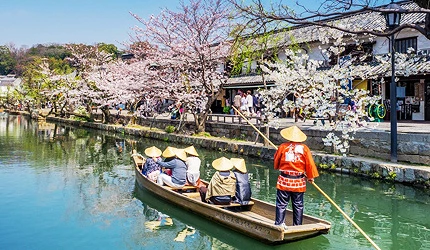 從岡山市內開車約35至45分鐘,即可抵達美麗的倉敷美觀地區。倉敷地區保留了許多從江戶時期以來的特色建築和歷史遺跡,甚至是在民間傳說「桃太郎」故事中登場的場景,因此有日本遺產之都之稱。可以乘坐擺渡船在貫穿街道的倉敷川河上感受柳樹隨風飄動,相當具有風情!而河岸兩邊則是許多歷史長達3百多年的古老町家建築、博物館以及美術館,每年4~9月川邊沿途會有夜間點燈,街道會變成和白天完全不同的形象、美得如夢似幻。