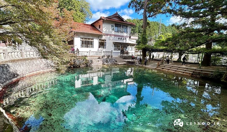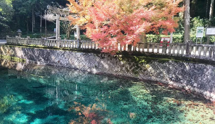 清澈見底且帶有土耳其藍的「別府弁天池」,是近年來網路上知名的打卡景點。由於秋吉台的石灰岩地質特性,當雨水滲透進石灰岩層後經過層層過濾,在當地形成了多處的地下湧水,在這之中,「別府弁天池」更是被日本環境廳評價為「日本名水百選」。水質淨透且遠優於一般水質的基準,因此很多人還會大老遠來這邊取水飲用。