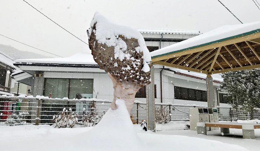 「秋芳洞」內部充滿各種奇特造型的鐘乳石,可以感受到大自然鬼斧神工的美景,像是高15公尺寬4公尺的「黃金柱」,以及宛如梯田美景的「百枚皿」。值得一提的是,這裡還意外能看到台灣的身影!從洞內往正面入口出去之前,入口在與河面的反射之下,看起來竟類似台灣的形狀,令人嘖嘖稱奇。美禰市約從10年前開始就持續與台灣進行友好交流,秋芳洞商店街的入口處有一個野柳地質公園的女王頭友好紀念石,冬天時還有機會看到積雪的女王頭喔。