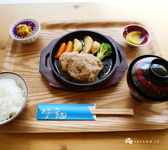 餐廳內所提供的餐點也相當豐富,像是當地起源於礦工工人的B級美食「鐵鏟內臟燒」(スコップホルモン定食),外型搶眼且營養豐富;使用別府弁天池池水飼養的鱒魚所做成的「別府弁天池鱒魚壽司」,色澤剔透且味道可口;而美禰梶岡牛的「黑毛和牛漢堡排」,則是口感軟嫩份量十足。各種當地具有代表性的餐點都可以在這裡一網打盡,可說是中午用餐的好去處。