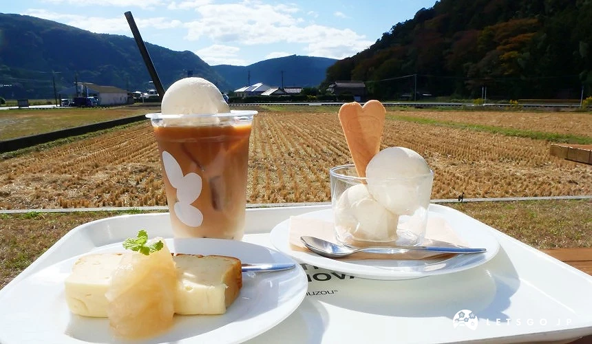 「別府弁天池」的湧水正是製作美味日本酒的關鍵,來到店裡除了品酒之外,也有很多非酒精的甜點可以選擇,像是使用酒粕所製作的起司蛋糕或是使用湧泉水作成的酒粕冰淇淋漂浮咖啡,其濃醇回甘的口感,讓人吃了相當驚艷。