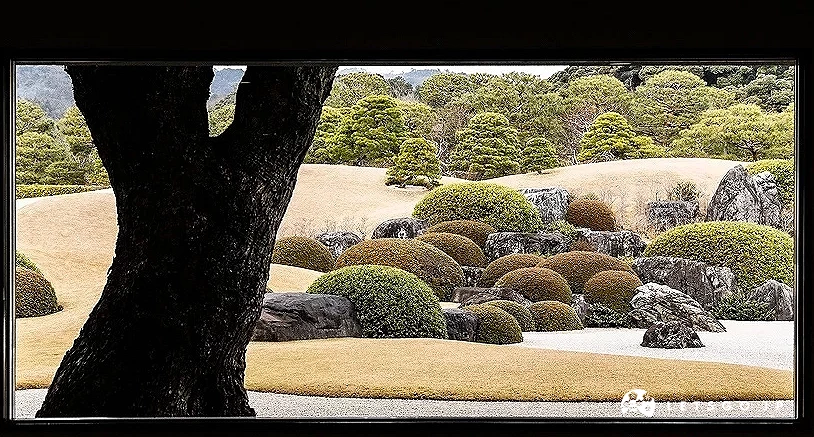 下午第一站造訪位於島根縣第一個景點「足立美術館」欣賞自2003年起連續被評選為「日本第一庭園」傳統日式美景,秉持「庭園即畫作」的理念,設有如「生之額繪」、「生之掛軸」等觀景設計,讓自然景致成為畫中一景,十分特別的視覺體驗。另外這裡還有總數約兩千件,以「橫山大觀」為首的近代日本畫為主軸,同時也涵蓋北大路魯山人等名家的陶藝作品,也很有特色。