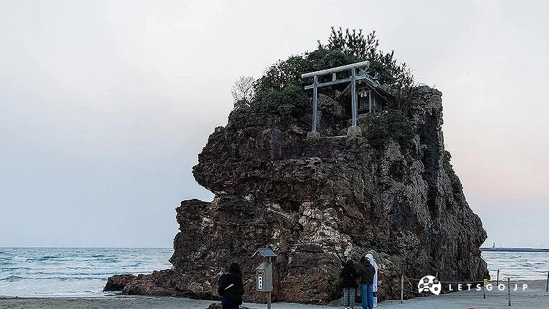 下午前往「稻佐之濱」,這處從出雲大社步行約15分鐘即可抵達的海岸,以白沙與青松的優美景致聞名,沙灘上聳立著名為「弁天島」的巨石,其上有一座小巧鳥居。