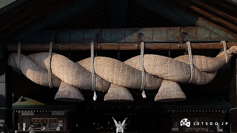 最後前往「出雲大社」,祭祀結緣之神「大國主大神」,出雲大社吸引無數人前來祈求愛情、友誼與工作的良緣,境內「神樂殿」的大型注連繩長達13公尺、重達5.2噸,氣勢磅礡,神社內還藏有許多造型可愛的兔子雕像。一天行程結束後,前往出雲市內住宿。