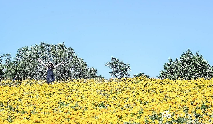 抵達鳥取的第一站,就到日本規模最大的花卉主題公園「鳥取花回廊」吧!園區佔地廣達50公頃,最吸睛的設計是全長約一公里的環形屋簷步道,無論晴雨都能輕鬆散步賞花。其中的「花之丘」區域是一片約一萬平方公尺的花田,花卉隨著季節綻放不同風貌。夏天來訪時,金黃萬壽菊(又稱金盞花)盛開,配上遠方壯麗的大山美景,畫面美得像明信片,非常適合拍照打卡。