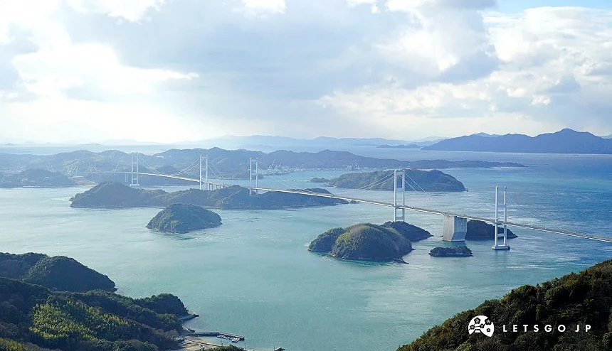被譽為島波海道中擁有最佳展望的景點,擁有360度環型景觀台的「龜老山展望公園」,每到夕陽時刻總是吸引許多人前來。而來島海峽大橋夜晚經常會有點燈活動,夜晚來看夜景也很壯觀!展望台的設計由建築家隈研吾操刀,為了不破壞周邊自然景觀而採嵌入地形的設計,讓建築物本身也成為知名的景點之一。